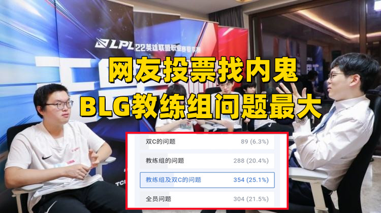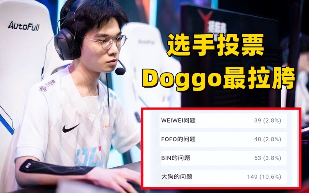 回到开篇的问题,坐拥战舰级实力的阵容,为何BLG依旧是一胜难求呢?针对这个问题,有网友发起了一个找内鬼投票,咱们一起来看一下数据,票数占比最高的是教练组和双C,其次也有大部分人认为全员都有问题,而在单选手投票中,AD位置的Doggo得到的票数是最高的,从投票来看,教练组的问题是最大的。