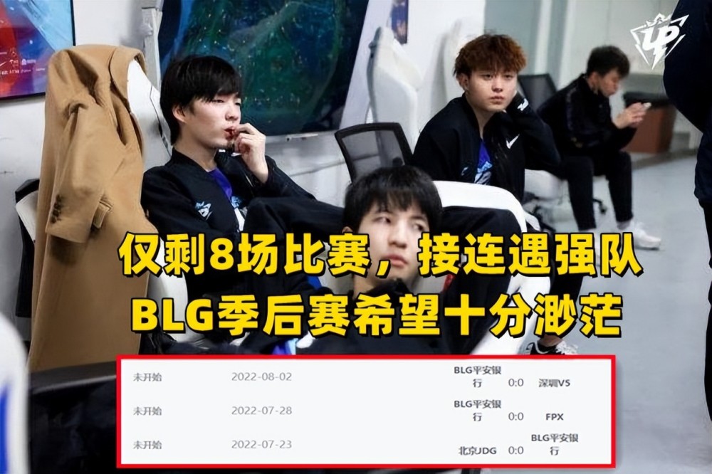 因为后续的对手,有机会拿下的只有WE、RA和LGD三队,而即将遇到的强队中,BLG要挑战目前联赛第一的V5、第三的JDG、第八的RNG,同时还有状态回暖的FPX和OMG,晋级季后赛的最低标准是8胜(存在加赛可能),所以BLG只要输掉2场比赛,就彻底失去季后赛晋级的可能性,但以目前的状态来看,三支强队几乎都没戏。