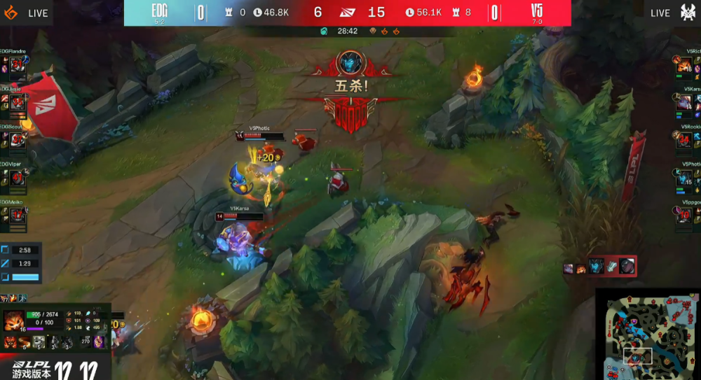 在Rookie正式归队之后,V5实现了质变,他们展现出了比以往任何时候都要恐怖的强大实力。尤其是双C在整个LPL联赛里的表现非常突出,而今天小将Photic不仅是用复仇之矛砍下5杀,更是面对去年总决赛冠军Viper完成了正反手教学。第一局用复仇之矛打爆了塞娜,第二局用塞娜打爆了复仇之矛。曾经的莫欺少年穷,如今的会当凌绝顶,这支V5各种意义上都是现在LPL的最强战队。