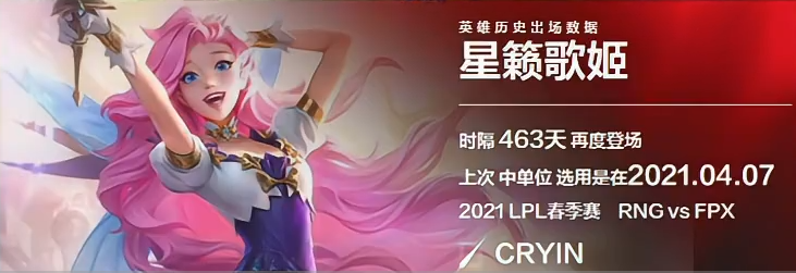 在今天TT对阵AL的第三局比赛中,TT中单Ucal选出了萨勒芬妮。这是萨勒芬妮时隔463天再次以中单位登上LPL赛场,上一次是Cryin在2021年4月7日选出。
