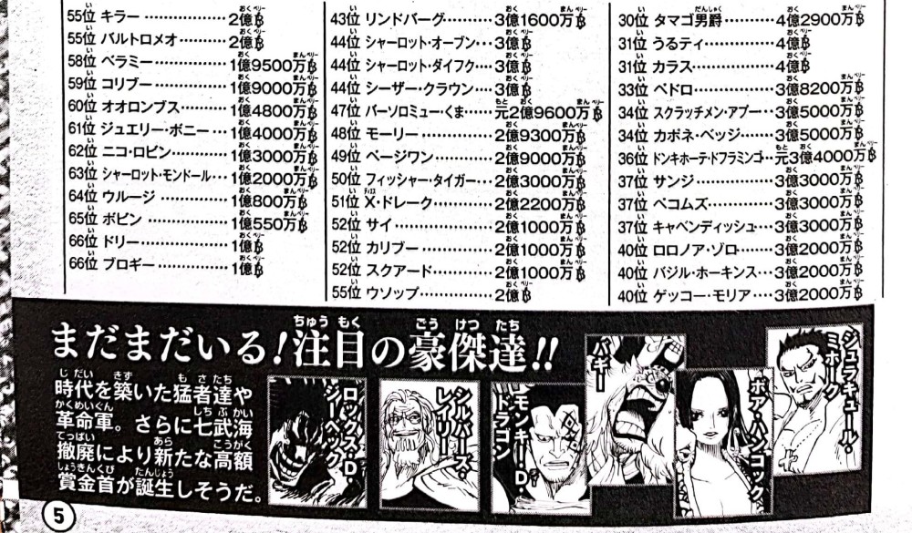 那么在这6人之中,谁的悬赏金会出乎意料,谁的悬赏金又能一路上涨,最终超越罗杰呢?我们不妨来分析一下。