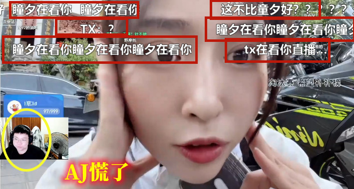 当这位女骑手发现AJ来了,当场给观众表演了一波“一字马”,大量观众全都表示要向瞳夕告状,姿态和Letme也发现了AJ的异样之后,AJ才一脸慌乱的离开了女骑手的直播间。