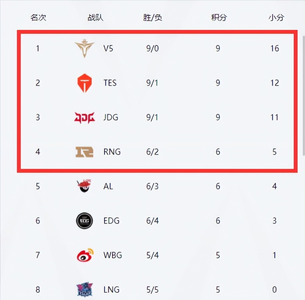 然后,今年最有可能争夏季赛冠军的应该就是排在前四名的JDG、V5、TES、RNG这四支战队。再往后的战队也许实力或者战术体系还不错,但我更喜欢用“伪强队”来形容他们;