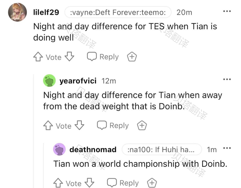 -Tian是否离开doinb,对于他来说是白天和黑夜的差距。