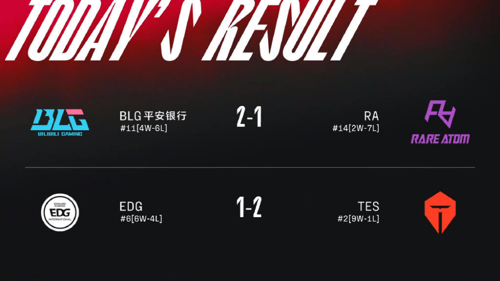 RA和BLG相互喂饭最终还是BLG技高一筹,小天实力倒退三年力助TES击败EDG豪取九连胜。
