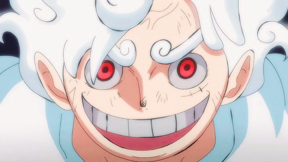 路飞的五档形象非常霸气,发色、身体几乎都是白色,但双眼的颜色却格外抢眼,因为居然是罕见的红色!众所周知,路飞平时的瞳孔颜色都是黑色,而且只是一个“实心点”,通常情况下尾田老师只有在描述夸张表情才会将路飞的眼睛形状改变,否则这种设定是“雷打不动”的。