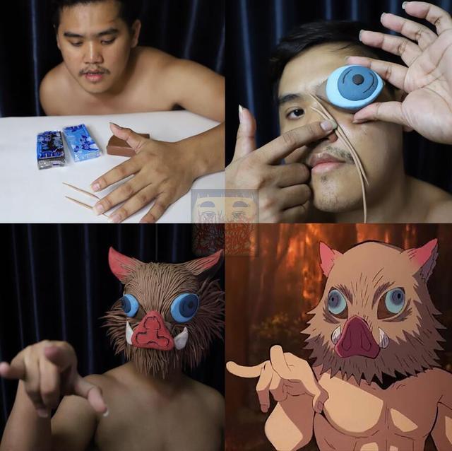 伊之助是全剧的颜值担当,泰国小哥费了好大的功夫来cos他。
