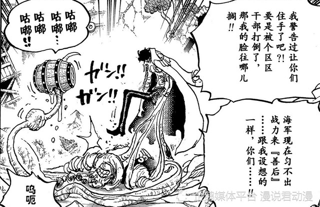 如果是绿牛一人蹂躏全盛时期的双灾,那的确配得上怪物之名。但如今只是补刀战败的双灾,表现不太够,反而给人趁人之危的感觉,尽管对百兽海贼团这样的凶恶海贼团不需要仁慈。