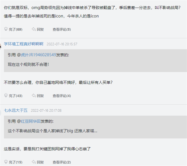 甚至有人放话:因为BLG太有钱,连裁判都要听他们的,阴阳怪气这场比赛很“诙谐”。实际上,外赛区观众并不了解LPL的规则。裁判并没有拿任何战队的钱,只是按照规则行事。维护自家硬件和网络是战队的责任,出现问题必须自己承担。