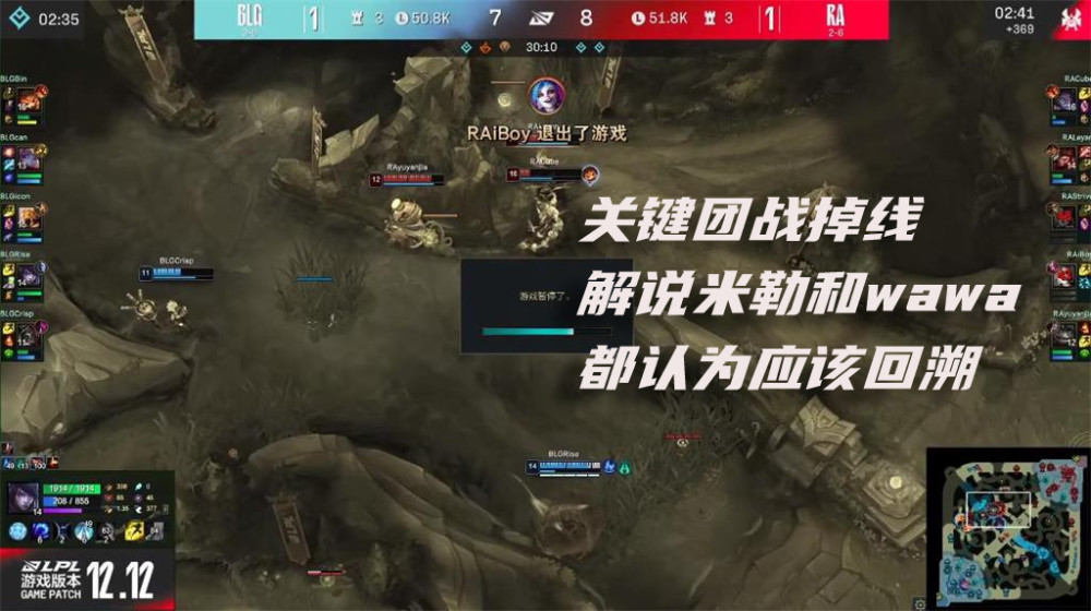 前导:BLG目前排名第十二,RA排名第十四,两队都是季后赛机会渺茫、排名靠后的队伍。一般来说,关注两队交手的人不会太多。偏偏比赛过程中发生了一点小插曲,引起了大家的广泛关注。