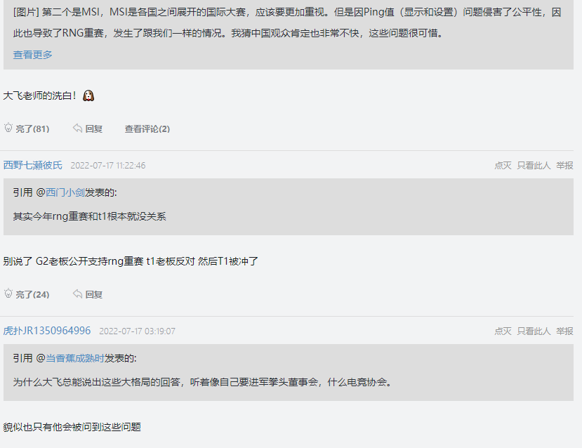 faker的意思很清楚,游戏公司可以控制版本和规则,还要举办比赛,事情都是他们说了算的。所以稍微出一点问题大家就会质疑,为了避免这种情况发生,游戏公司应该尽量减少各种问题。他还提到了RNG那次重开,替LPL观众表示不满。