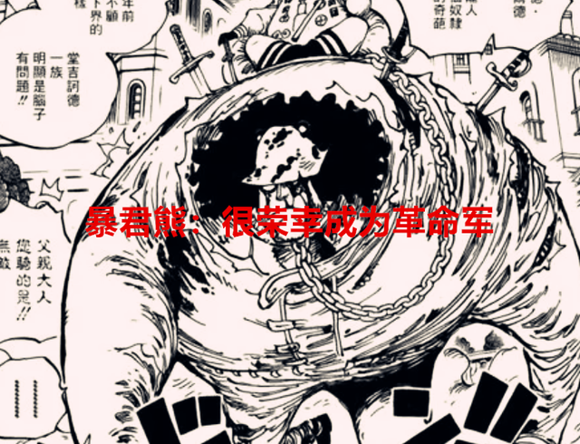 根据阿拉伯人给出的情报信息,他们是这样说的,向伟大的革命军总参谋以及各位领导敬意和荣幸,感谢自己可以作为一位革命军者逝去。这句话的含义很大,按照目前的剧情来说,逝去的人,只能是暴君熊,为什么呢?之前暴君熊就被天龙人欺压,因为博士已经把暴君熊研究完毕了,所以暴君熊就没有存在的意义,他就变成了天龙人的奴隶,当萨博看到暴君熊的时候,他实际上已经不行了。