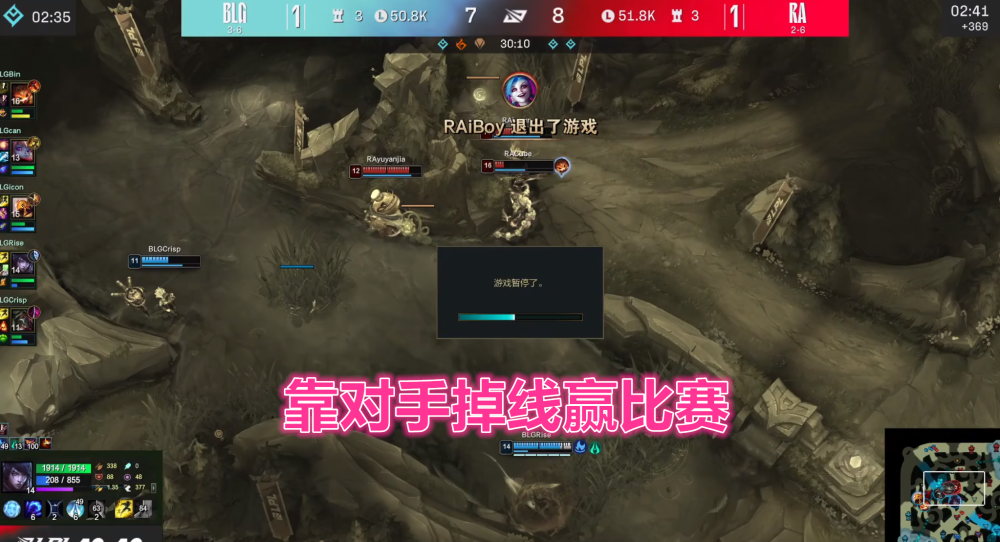 虽然BLG战队击败RA拿到了久违的二连胜,不过赛后他们却遭到了大家的质疑,因为在这三场比赛中RA集体掉线两次,第一次无伤大雅,但最后一次集体掉线完全改变了比赛走势,当时RA拿到大龙之后趁势追击,本来能收割的RA双C突然暴毙,就这样RA优势变劣势最后被一波带走,虽然当时及时暂停了但是没有时空回溯,这也是很多网友声讨BLG赢得不公平的主要原因,对于这件事简单和大家谈一下个人观点。