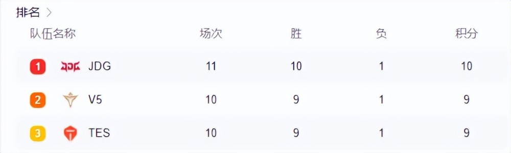 不过要说最受玩家关注的还得是三支连胜的战队,一支是坐拥榜首的V5,一支是赛季黑马JDG,还有一支则是后来居上的TES,V5在17日对阵WBG的比赛中遗憾输掉了对局,结束了不败纪录,而反观TES则是在揭幕战输掉一场后,后面的所有比赛皆以全胜战绩赢下,在击败了EDG之后,TES目前也保持9连胜的记录,冲击榜首也指日可待。