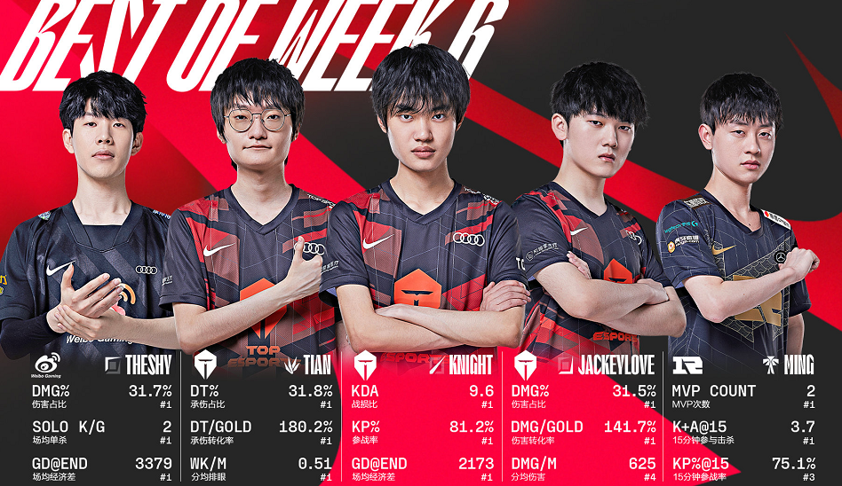 当然,大黄的出色发挥官方也是看得到的,周最佳新秀的称号,直接给到了,也就是说,TES五个人,四个人直接上了周最佳,实力都清楚了吧,只是留下辅助有点尴尬了,其实辅助发挥也同样出色,但是官方不会最佳阵容都给一个战队的,也能理解。