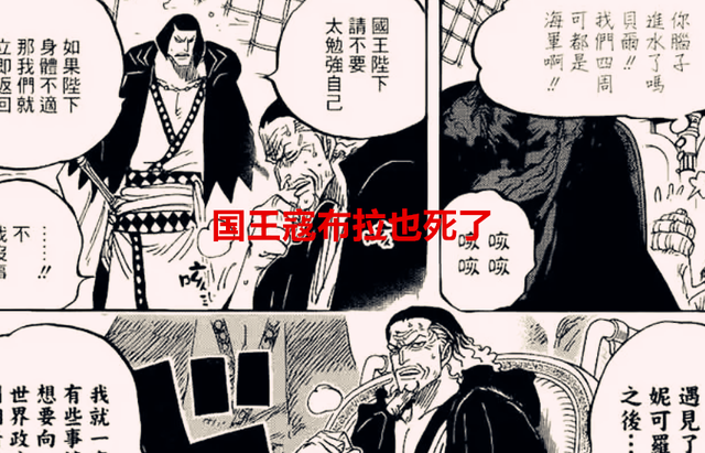 还有一位角色可能也死了,他就是阿拉巴斯坦的国王寇布拉,之前五老星就想要干掉寇布拉,说他是叛徒,存活了这么多年,也是时候解决他了,所以世界政府的人,可能暗地里把寇布拉干掉,之后又嫁祸给萨博,想要让萨博成为替罪羔羊,这样世界政府的人就不用背锅了,反正萨博跟大将开战也是事实,干脆都把事情推到萨博身上。