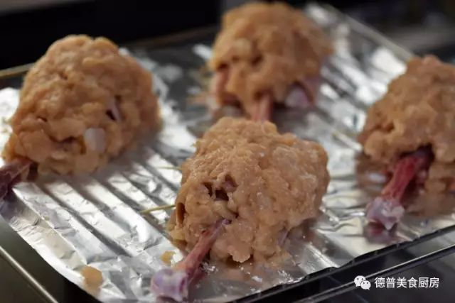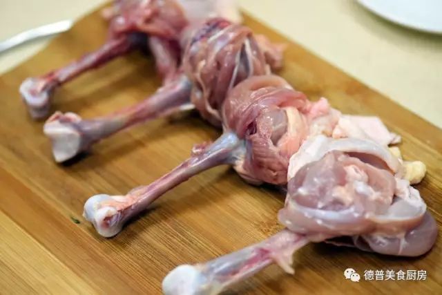 1、处理鸡腿,露出骨头,顶端不要切开;