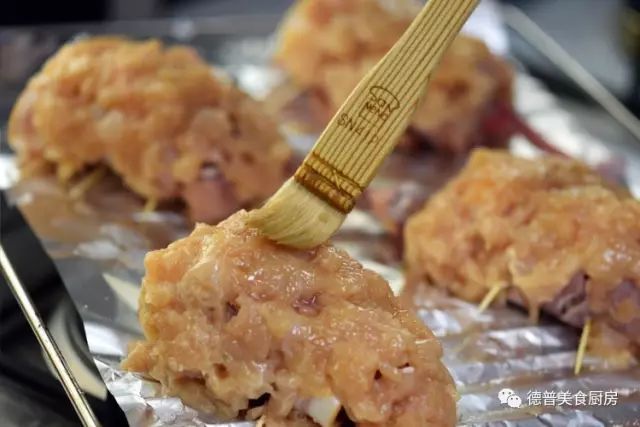 6、将德普烤箱调至风扇烤210度,烤制20min,取出刷酱油,在烤制10min,出炉即可;