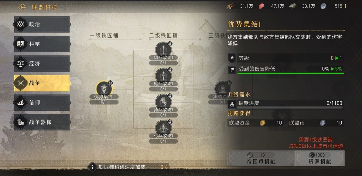 联盟通过联盟建筑、发展联盟科技,可增强防御力。