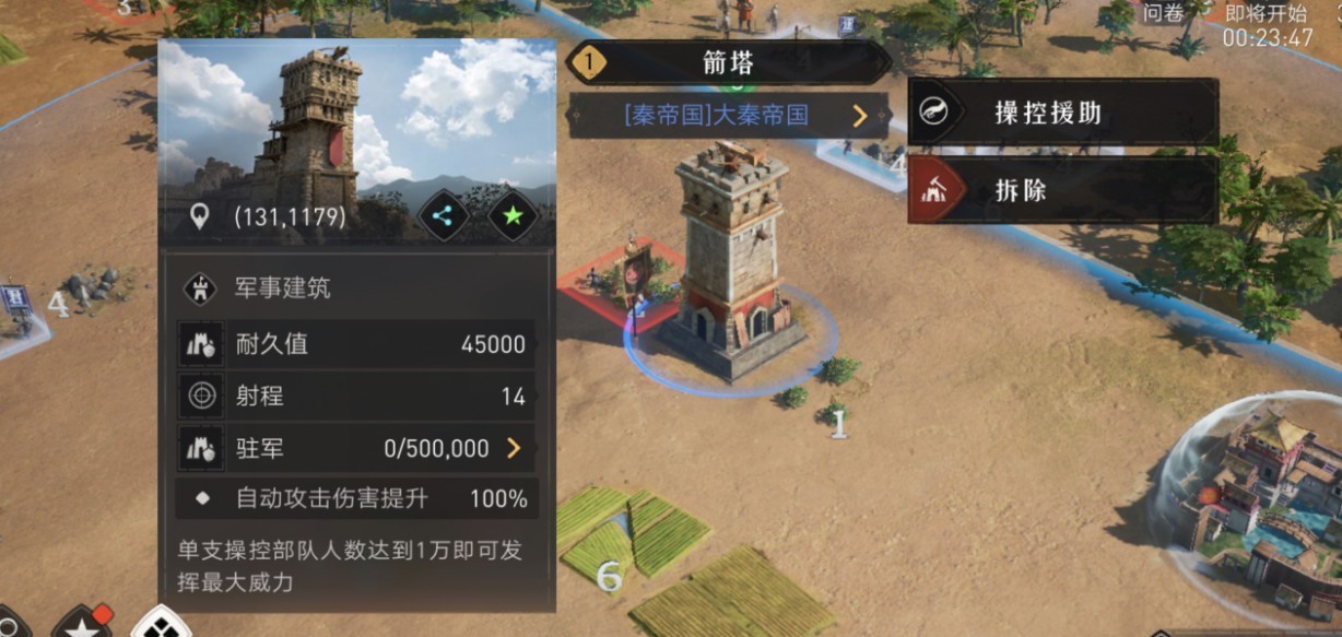 联盟建设箭塔守护领地。箭塔将自动攻击入侵领地的敌盟,联盟军进驻箭塔,可操控箭塔并发挥箭塔的更大威力。