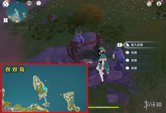 「错位的海螺三」在双双岛北面的小岛屿上,与三只夜鸦对话,就会出现一个[丢入石块]的选项。