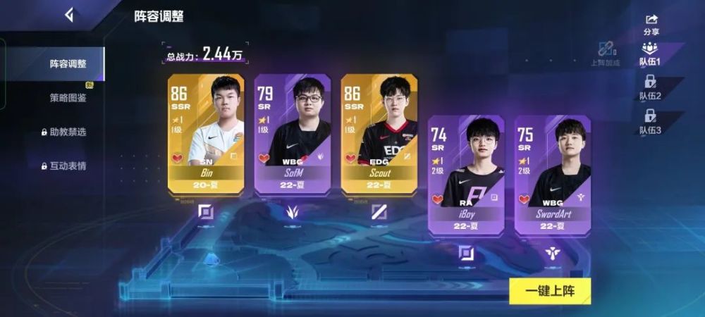 对电竞战队而言,“经理”通常扮演着战队成员管理人、以及内部事务拍板者的角色。为了还原这样的定位,游戏的开局也从“组建战队”开始。玩家先要以抽卡签约的方式获取五位LPL选手,达成参与比赛的基础条件。