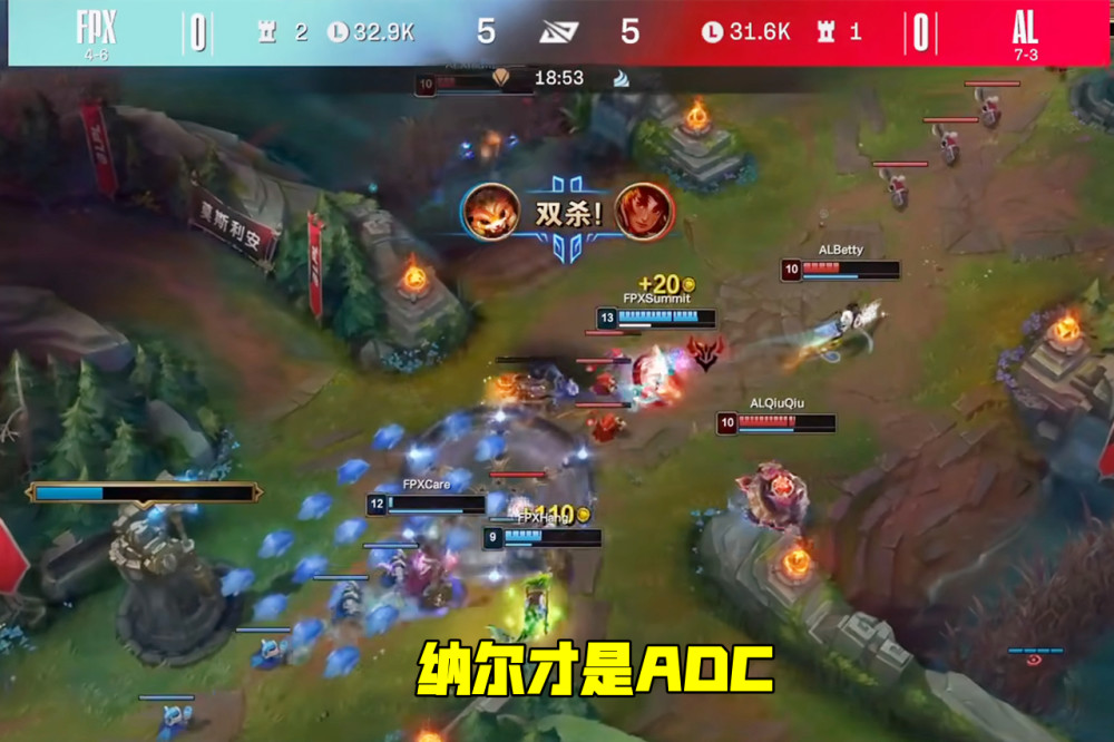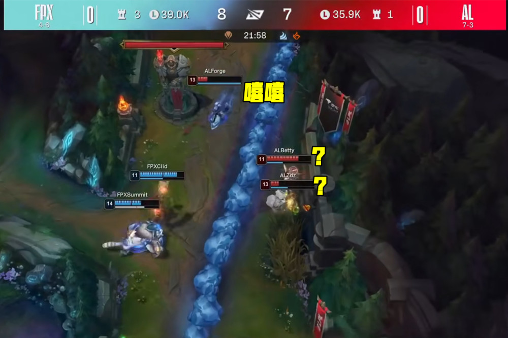 决胜局FPX把斯维因和猴子全放出去,然后给双人组选轮子妈和猫咪,Care拿到绝活狐狸。前期FPX配合有点完美,先锋团猫咪大招控住四人,中野收割战场拿到三个头,随后Clid带着Care一起游走,下路越塔再拿两个头,AL彻底陷入被动。
