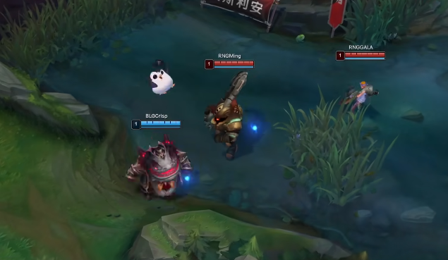 于是在比赛开始之后,两个人就在中路下河道口那里相遇,两位辅助选手开始在一起转圈圈,我们可以看一个泰坦一个塔姆,在这里玩的不亦乐乎,开启“贴贴二人转”。这也算是赛场上一种友好的方式。可以让大家感受到不一样的氛围。