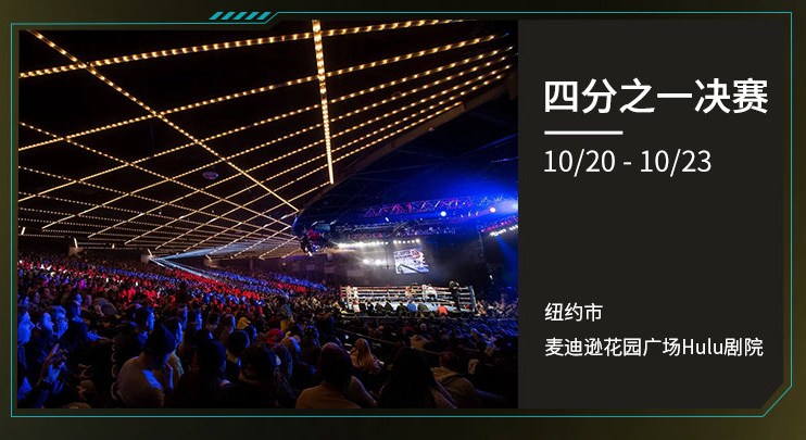 而小组赛则是从10月7日开始,一直持续到10月16日,比赛地点则是安排在了纽约市的麦迪逊花园广场Hulu剧院。四分之一决赛则是从10月20日一直持续到10月23日,地点同样是在纽约市的麦迪逊花园广场Hulu剧院。