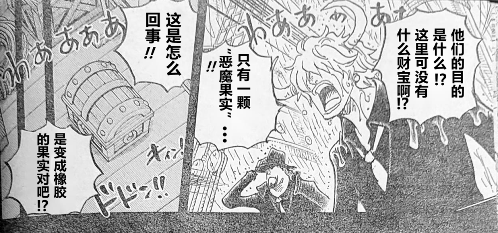 当时红发海贼团的船员看到对手是CP9还有点没底,但红发却让他们继续攻击。而且,在红发登上军舰后,负责押送军舰的福兹弗对于红发的抢劫也很懵,他说他们船上没有财宝,只有一颗恶魔果实,这时候红发说了一句“变成橡胶的恶魔果实对吧”。