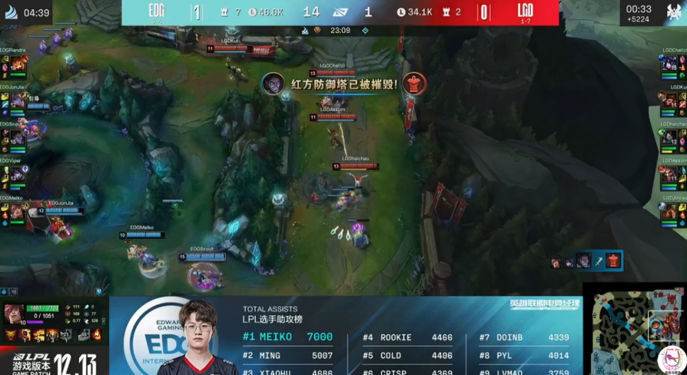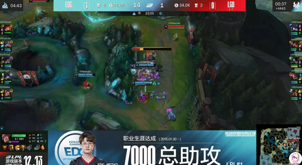 在今天EDG对战LGD的比赛中,辅助Meiko达成了7000助攻,是全LPL助攻数最多的选手,而且远超第二名2000个助攻。因为Meiko是现役选手当中资历最老的一位了,自从2015年初登赛场至今,已经7年了,平均一年一千个助攻,也无愧是大满贯辅助。