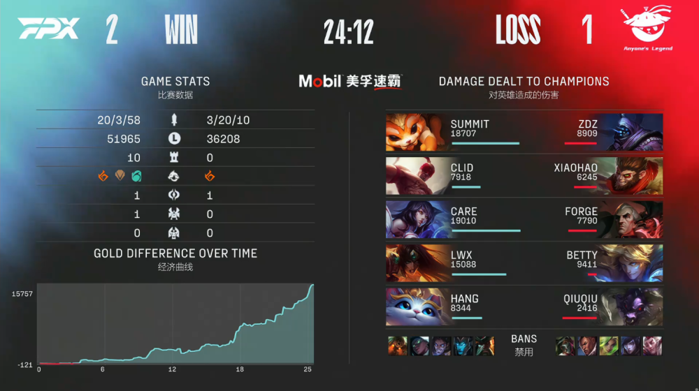 决胜局的比赛,没啥好说的 ,FPX单方面的碾压局,LWX很有点梦回S9的感觉了。而反观RA众将,则是在面对梦回S9的FPX,毫无应对能力,被牵着鼻子打了24分12秒后,未能完成五连胜!
