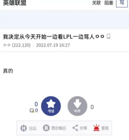 有一些韩网水友就发现,大洋彼岸的LPL赛区似乎百无禁忌,所有论坛都能够畅所欲言。而且更重要的是LPL的水友同样也有很多人对T1战队并无好感。换句话说就是在LPL这边本来就有不少人在骂T1战队,所以他们在LPL骂T1战队也不会显得非常突兀,这里是有骂T1战队的土壤的。甚至有可能因为在此结交到一众志同道合的朋友。所以不少韩网水友都觉得可以去中国的论坛尽情地骂T1战队。这样就再也不用怕被起诉了。