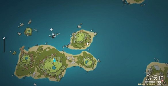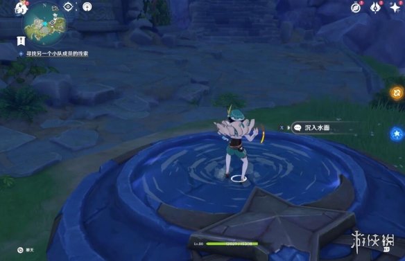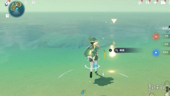 首先要观察此岛的状态对不对,瞅左上角的任务追踪有没有显示距离,没有的话就证明是错的,这时候走到上图鸡腿标记处,点击沉入水面,切换形态。