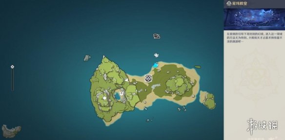 鸡腿=切换岛屿的地点,牛头=第二个任务npc所在的位置,六角星=错位的海螺一。