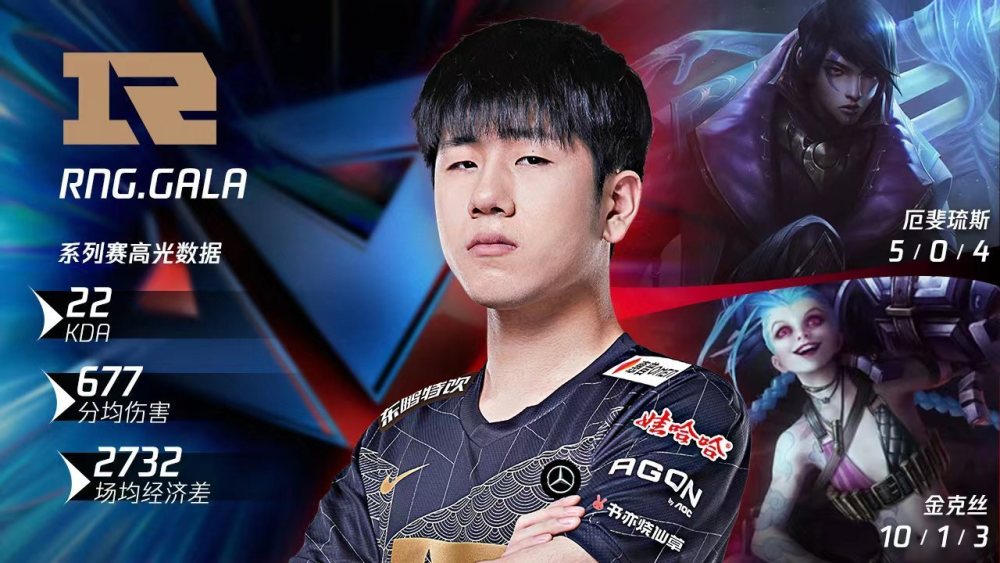 Gala作为RNG的首发AD,一直是队伍里较为稳定的点,无论是拿到何种阵容,他都能够平稳地度过发育期,在后期打出爆炸伤害。并且Gala对于辅助的依赖性不高,经常能看到Gala一个人在下路挂着,而Ming到其他路进行游走。因此很多人都戏称Gala喝的是水,挤的是奶。