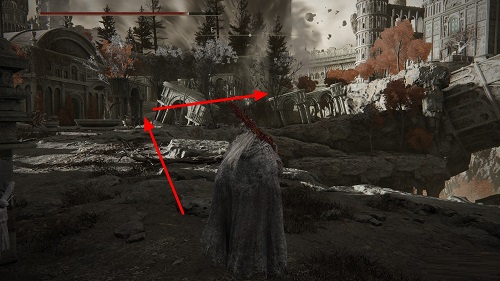 来到建筑残骸形成的桥处向左。