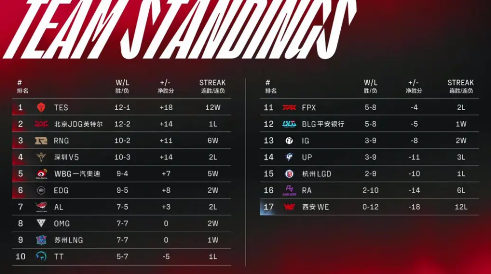 RNG:4场比赛拿下3场2-0并且TES达到19分便可以锁定复活甲
