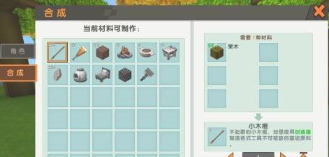 6、采集木材,在背包中或石质工匠台分解出小木棍。
