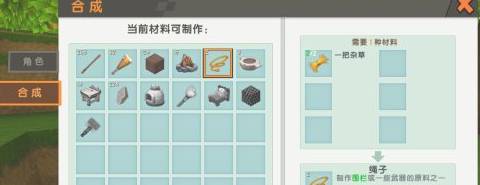 2、打开背包合成界面,消耗绳子和岩石块,制作空的工匠台。