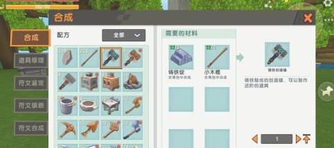 7、消耗小木棍和铸铁锭,制作出铸铁锤,拿在手上。