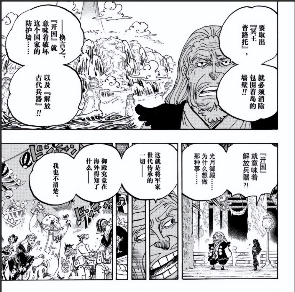 看点二:和之国开国是个大工程!在1055话之前,御田一直嚷嚷着“开国”,“开国”给人的印象就是恢复与外界的联系,互通有无的经商。看完1055话后,晓飞突然明白了,原来开国的意思是:打破和之国的围墙,让古代兵器“冥王”重现世间。打破“和之国围墙”需要象主的帮助,这也就解释了象主之前为什么会来和之国,在桃之助宣布不开国之后,象主又悄无声息地离开了和之国。现在来看,和之国开国之时,就是整个海贼王世界发生大变动之日!