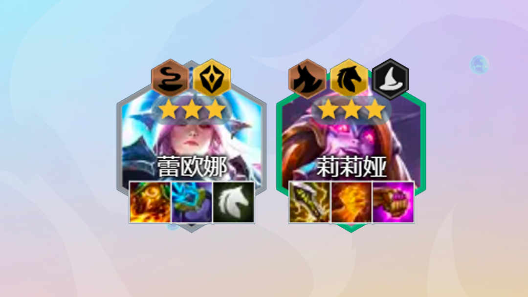 阵容中后期输出还是需要看莉莉娅,蕾欧娜可以理解为在前中期过渡,中后期莉莉娅的伤害才是关键,特别是打大成的前排。莉莉娅不需要4重骑羁绊,有布隆的2屠龙就能够克制当前版本绝大部分阵容。