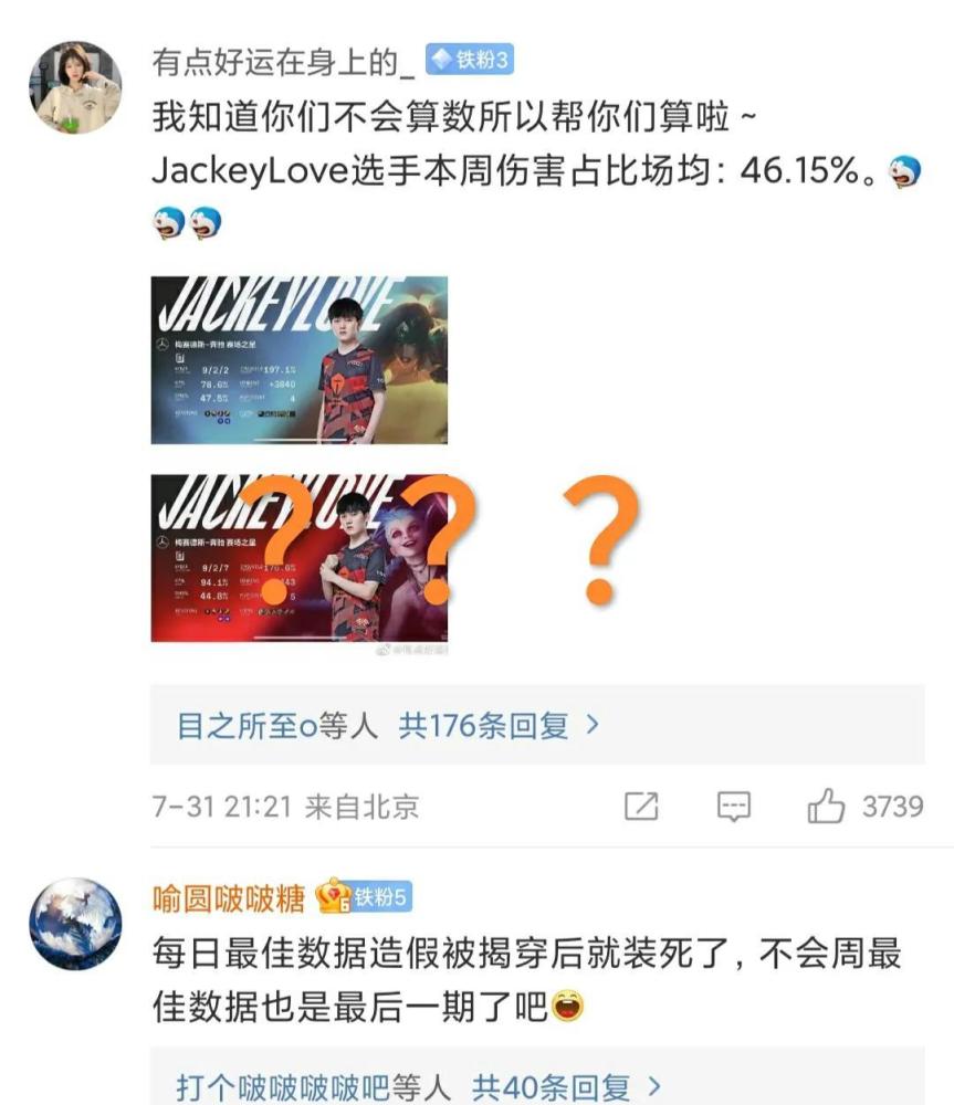 官方的不严谨出现了一系列的错误,感觉这种周数据根本没有必要去公布,可能也是赞助商的要求吧,毕竟每一次都是伴随着赞助商出现的。希望lpl赛区官方能够做事更谨慎一点,不要每一次出现错误之后,只是简简单单的发一个声明,如何避免下一次错误的出现才是最关键的。