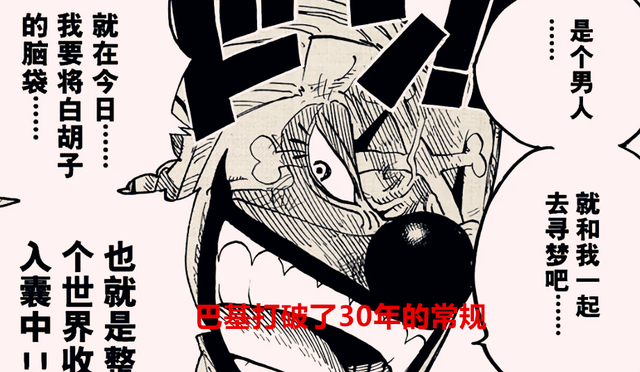 海贼王1056话情报更新了,内容十分有趣,终于想明白,为啥尾田会安排巴基这个人物做四皇,其实大有内涵,首先是因为巴基的身份,传说中海贼王的船员,跟四皇红发是发小铁哥们,曾经差点终结这一代的乔伊波伊,世界第一大剑豪鹰眼都砍不死的大海贼,出入海底大监狱如入无人之境,这就是巴基的标签,现在巴基更是破天荒,做了一件所有人都深感震撼的事情,他居然反向悬赏海军,至此新时代要变了,红鼻子的时代来临,下面一起来分析下吧。