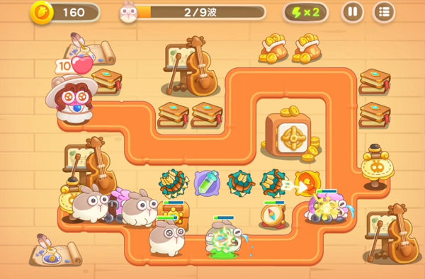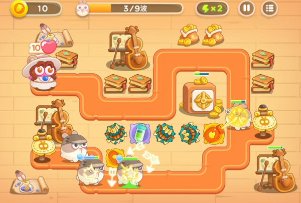 4波有个贵妇兔,5波开始出大炮兔,大跑兔破甲前会一直放兔子出来,尽早集火破甲,速度快的兔子也有限清理。炮塔尽量在拐角处建筑,开始清理剩下的障碍。注意7波以后大炮兔较多,记得提高火力。这关的地点是很充足的,剩下的可以根据小伙伴自己的喜好布置炮塔。