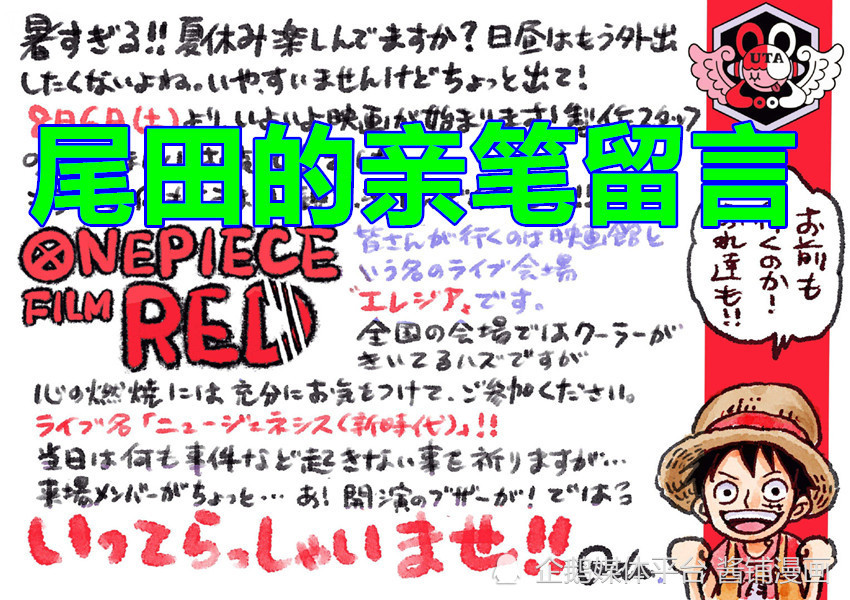 第三,尾田对于新的剧场版还是相当重视的。为此特别留言,表达了想法,希望漫画粉丝们能去捧场,作者尾田说道:“热死人啦!大伙暑假玩得开心吗?白天已经不想出门了吧。不过不好意思还是出趟门吧!电影终于要放送啦,各位制作人员们真的辛苦你们啦。现在我也无需多言,就请大家去好好看一场吧!”