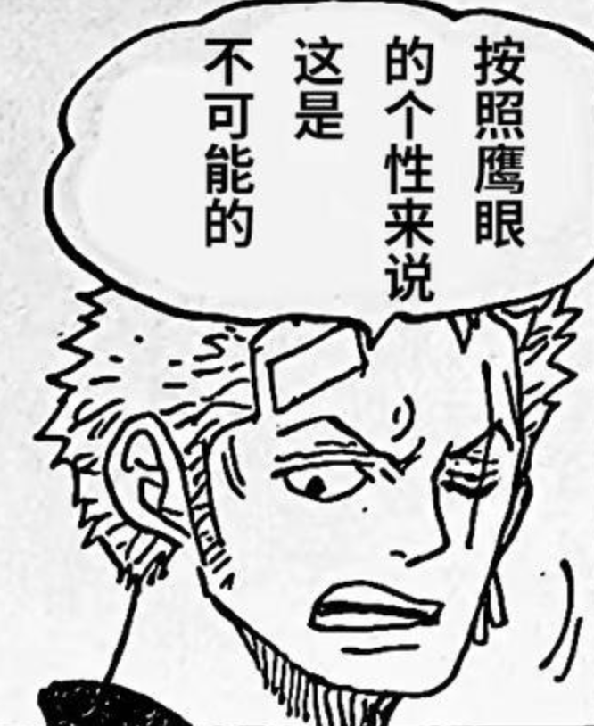 尤其是索隆,他是在场所有人最了解【鹰眼】性格的人,因为他住在鹰眼那足足2年时间,加上鹰眼是索隆的第二任师傅,其性格他是知晓很多的。