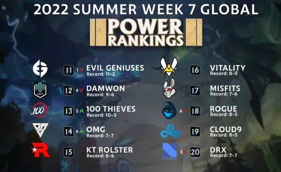随着8月份的来临,外媒再次公布了一周一度的战力排行榜环节,而这次的排行榜上,又有很多大家比较熟悉的队伍发生了变化,那么小编就借排行榜来简单带大家回顾一下各赛区的头部队伍在第7周的表现吧。