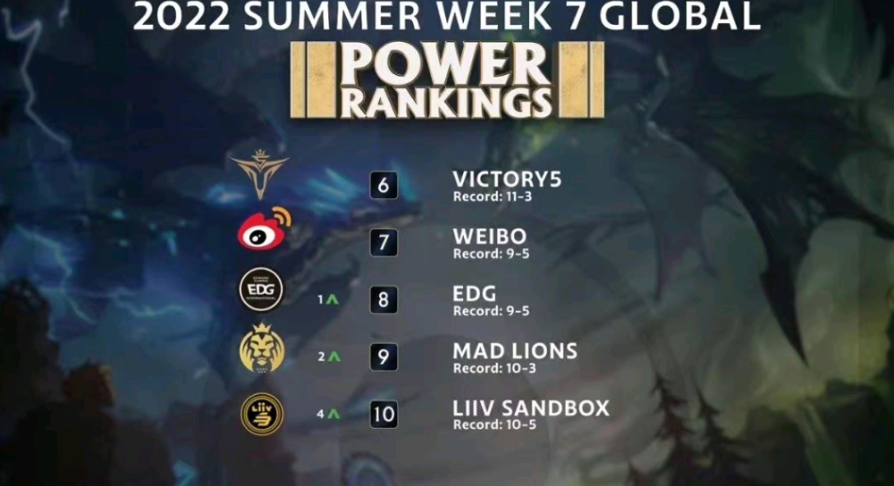 LSB和MAD大家可能不太熟悉,前者是LCK赛区的队伍,有点像LPL的OMG战队,属于是强队杀手,特别擅长爆冷,第七周就是因为爆冷击败了drx,才上升了四个排位,另外一个则是因为榜单是外媒评选,所以多少有些倾向性投票,而且MAD毕竟也是其赛区第一,给高一点也正常。